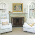 BEFORE: The library. On the floor plan – you can see that next to the library is the small dining room. These two rooms are now open to each other divided by newly placed columns. This mantel was removed and the gilt molding was painted over. Ballard reused this Chippendale mirror.