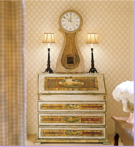 Faudree introduces Swedish at his weekend retreat with this painted secretary.