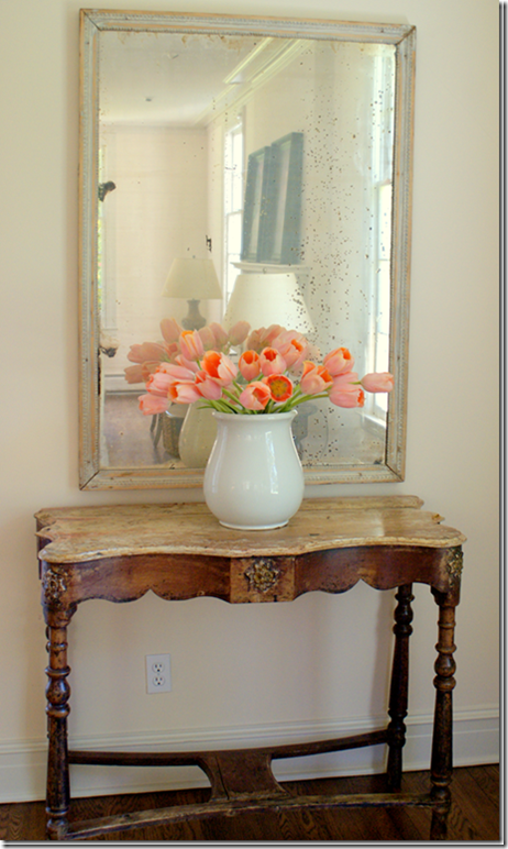 Looking back into the entry hall and through to the dining room, which also has French doors.  The console came from Brian Stringer Antiques in Houston.