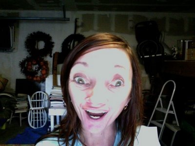 And here's the  beautiful Megan hard at work in her garaffice!  Unbeknownst to Megan, her daughters put this picture of  Megan on her business emails.  It took Megan a few days to first realize this, then a few more days to figure out how to remove this picture from her emails.  Don't ask how long the two of laughed over this picture.
