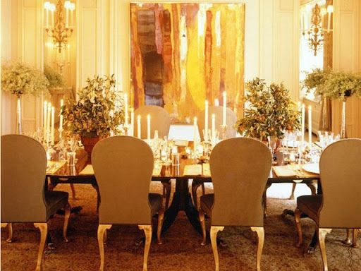 Published, the dining room is aglow in creamy tones. Quite stunning.